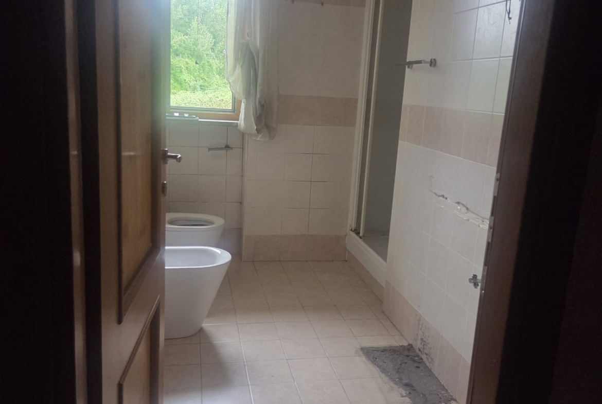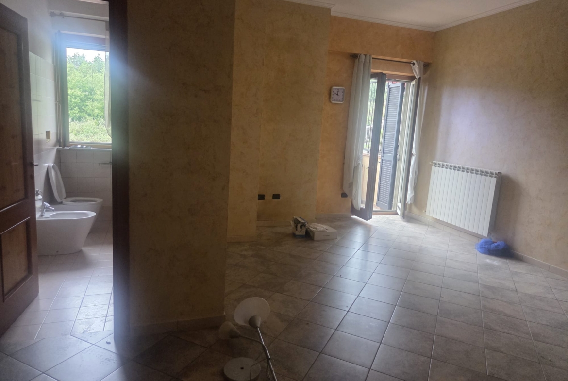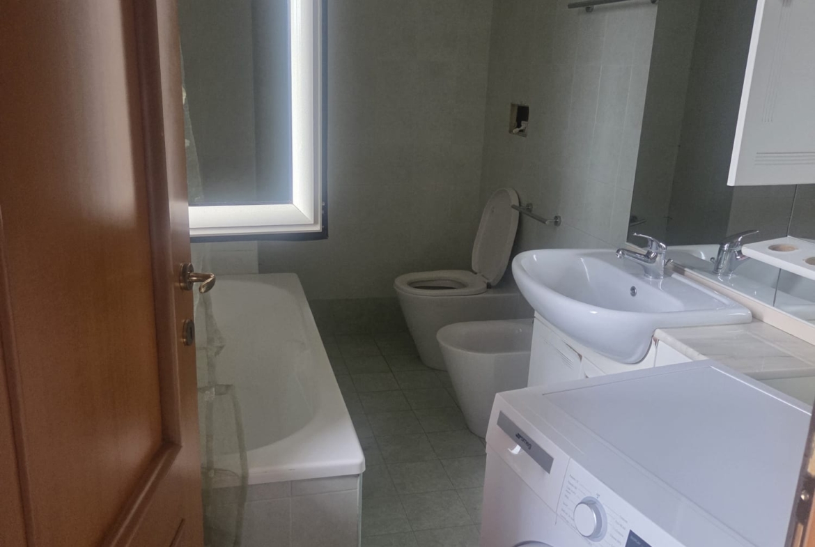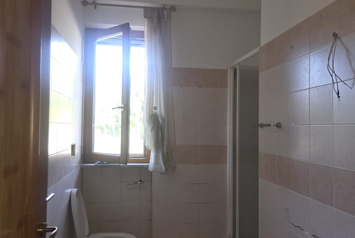 -grande sala con angolo cottura ed A/C, comoda stanza ripostiglio, 1 WC con vasca, 1 cameretta, 1 grande camera da letto padronale con WC interno, anch’esso con doccia.