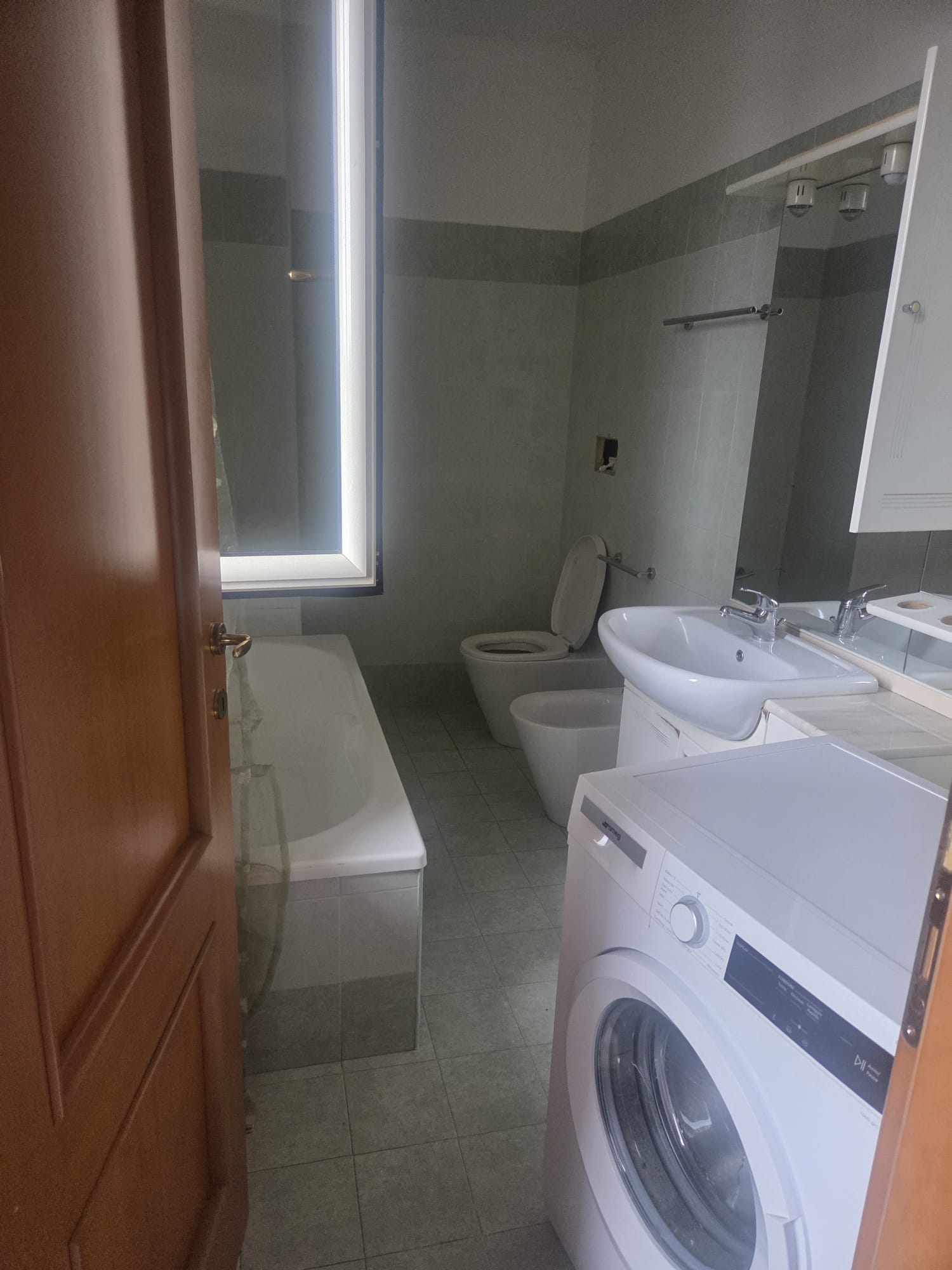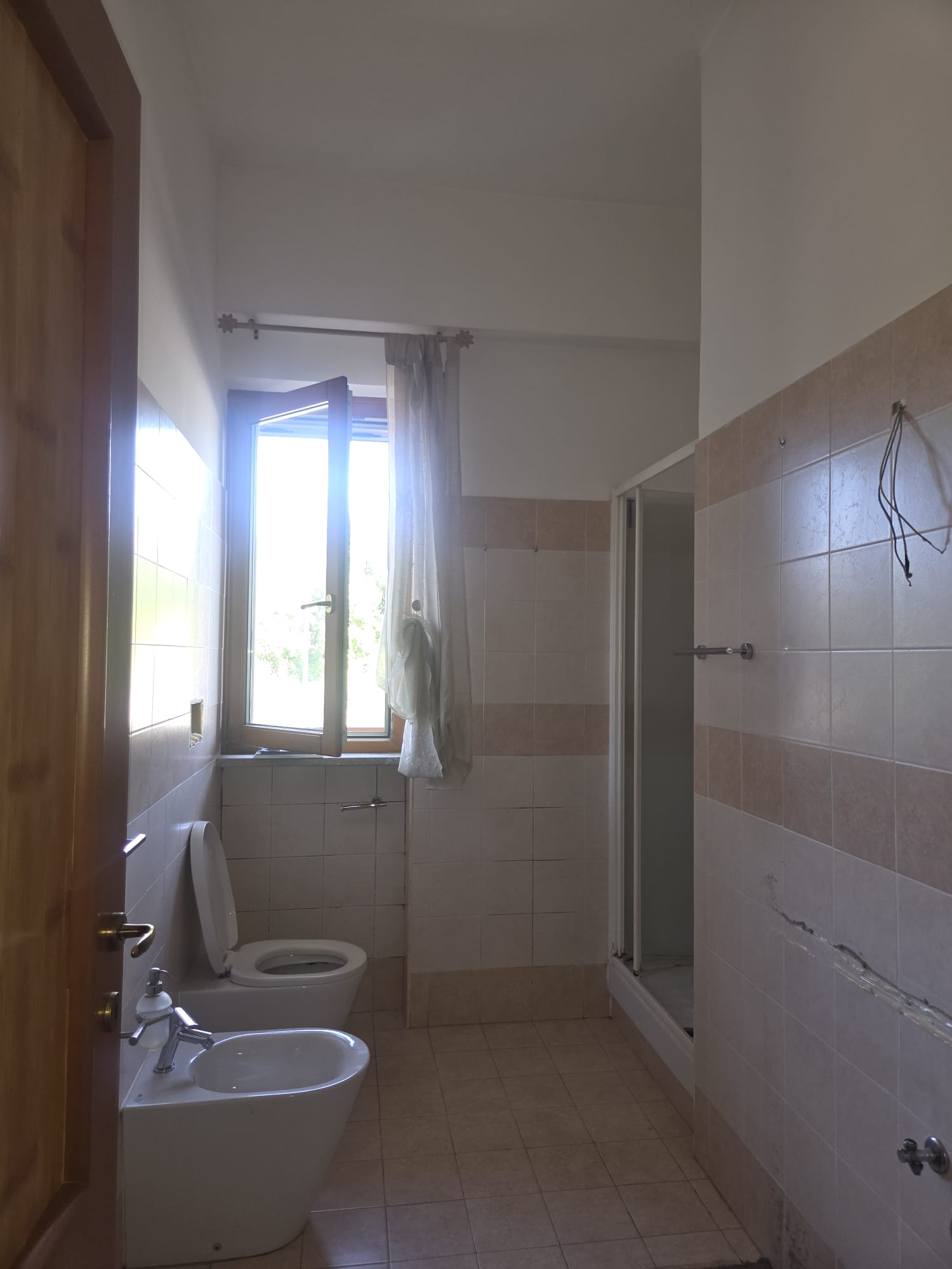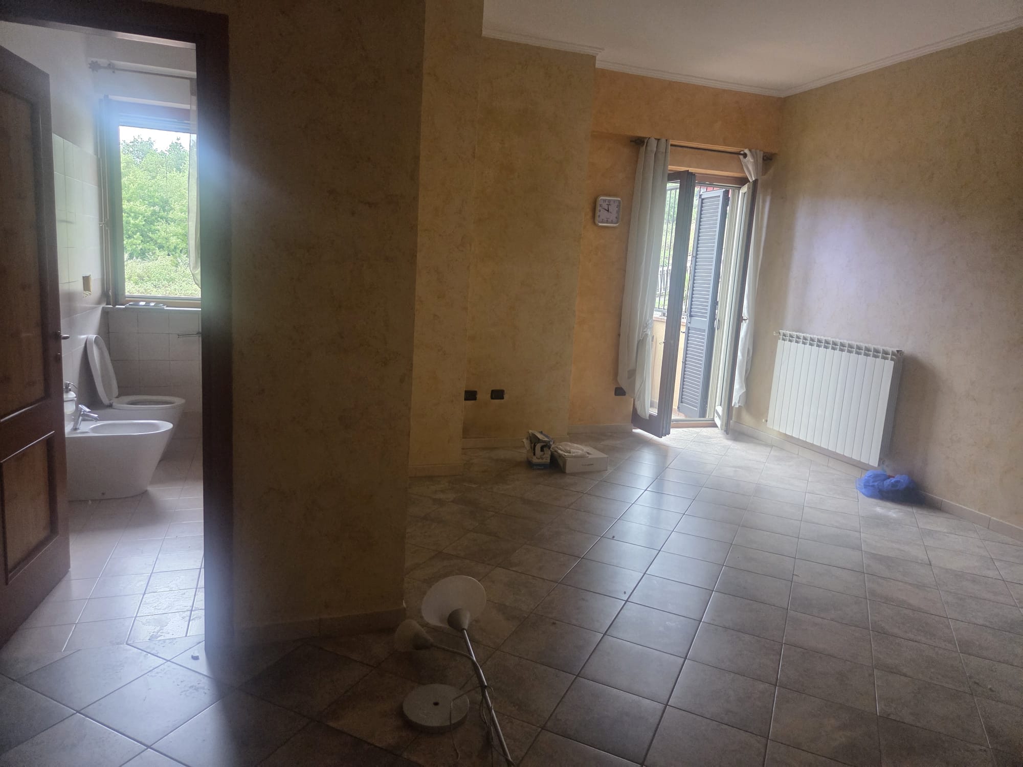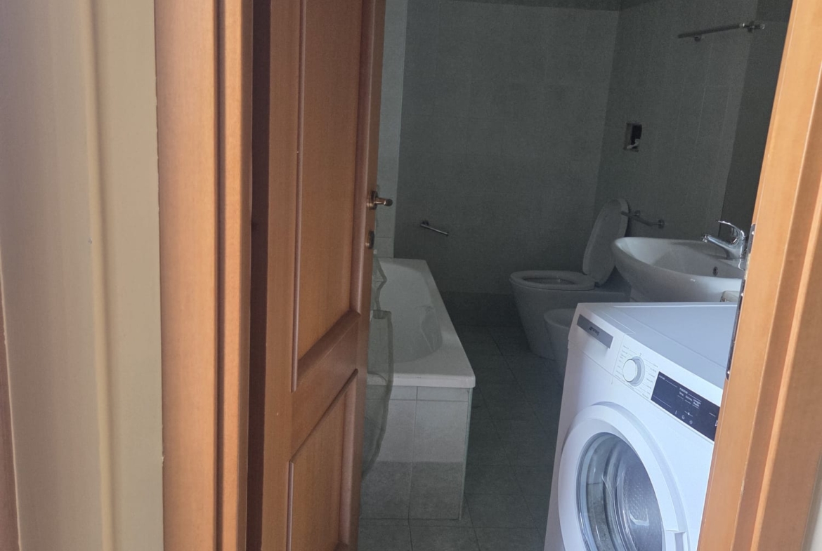 -grande sala con angolo cottura ed A/C, comoda stanza ripostiglio, 1 WC con vasca, 1 cameretta, 1 grande camera da letto padronale con WC interno, anch’esso con doccia.