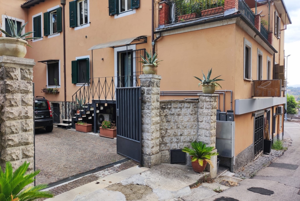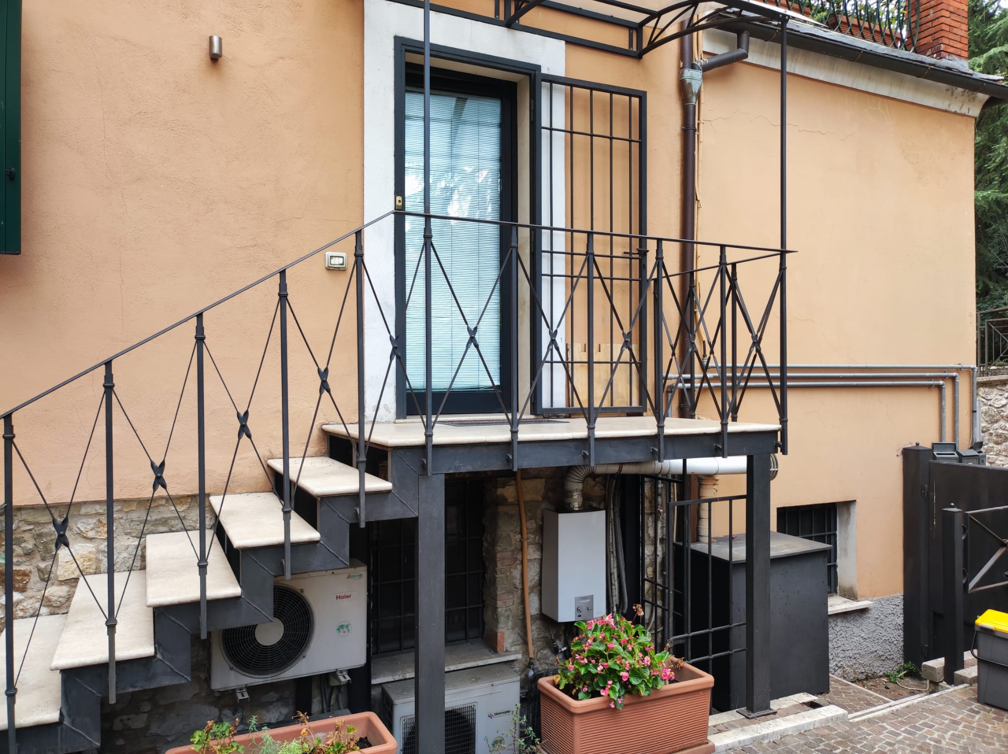 L’ingresso all’immobile è consentito tramite una scala in ferro adiacente il posto auto assegnato all’interno della corte comune.
