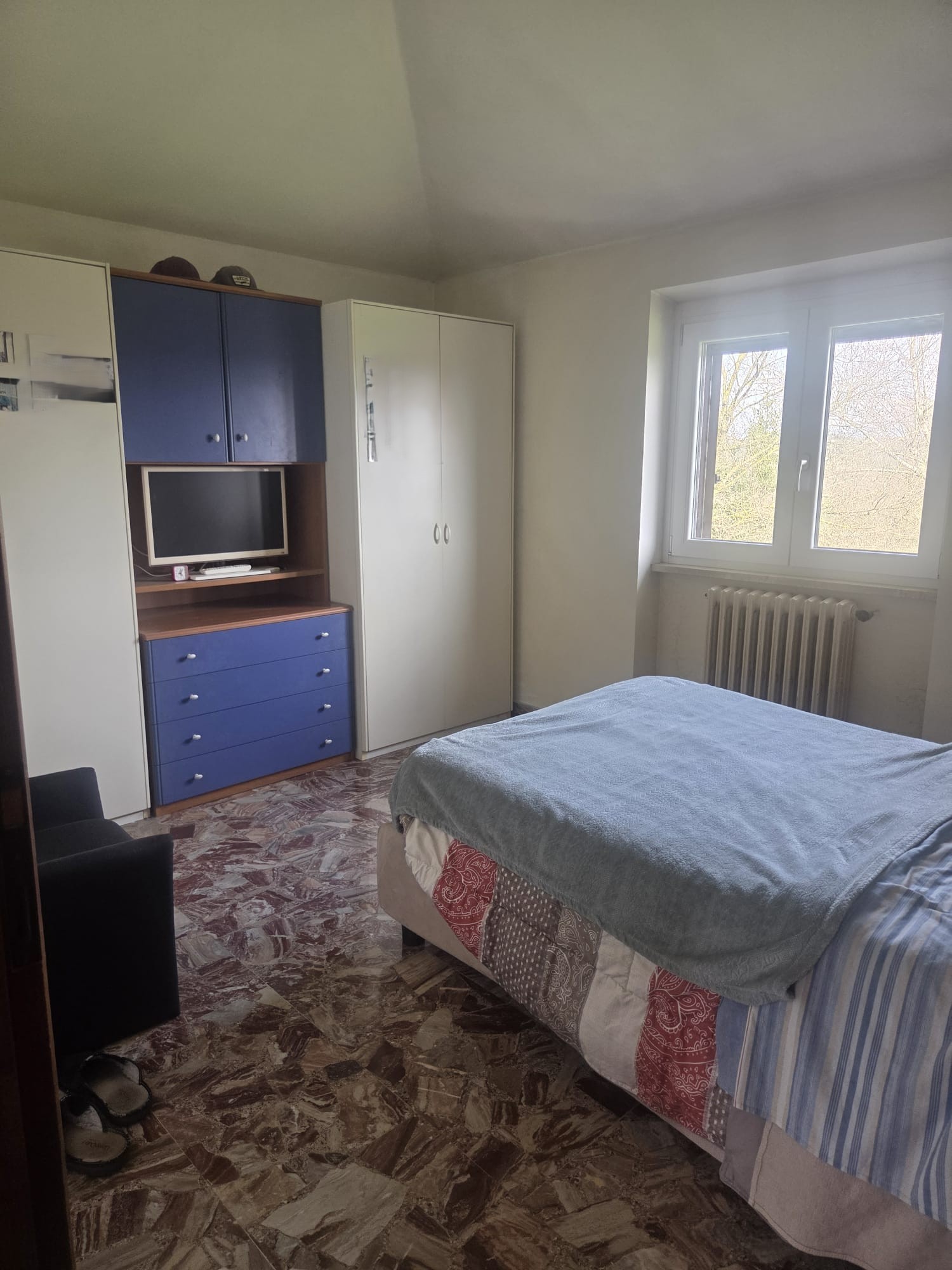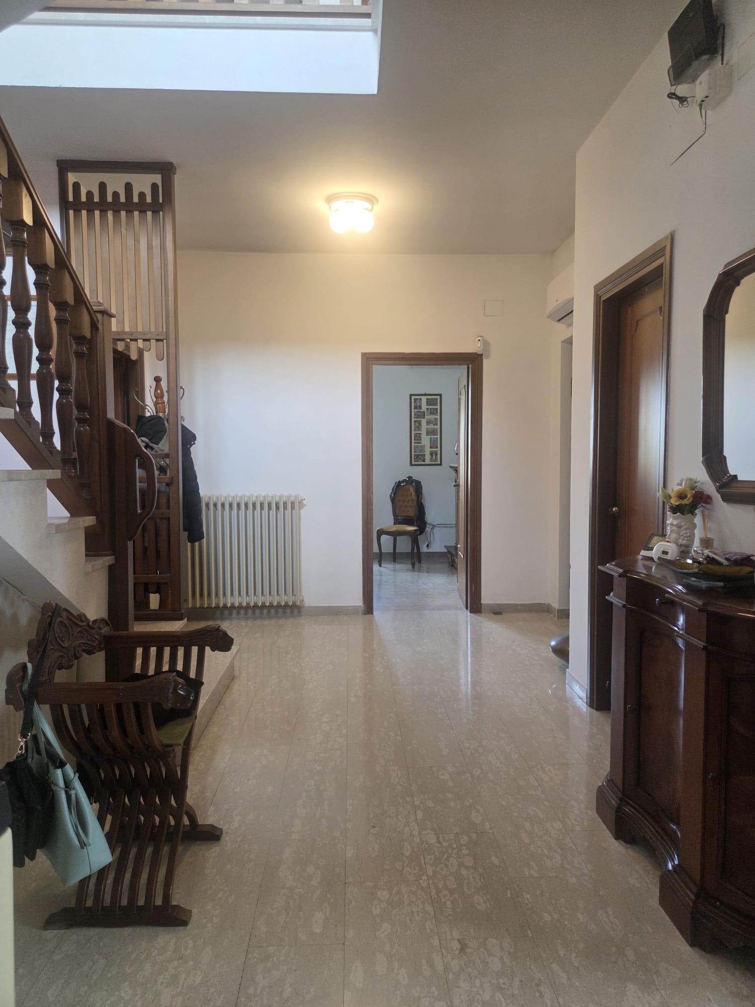 -PIANO SECONDO di circa 72 MQ collegato al primo tramite una scala interna in muratura rivestita in marmo, dove troviamo un grande corridoio/disimpegno, 3 camere da letto di cui una con affaccio diretto su uno dei due terrazzi della zona (circa 64MQ totali) e 1 WC con doccia. Anche qui troviamo radiatori in ghisa e split, le finestre sono in doppio vetro e pvc.