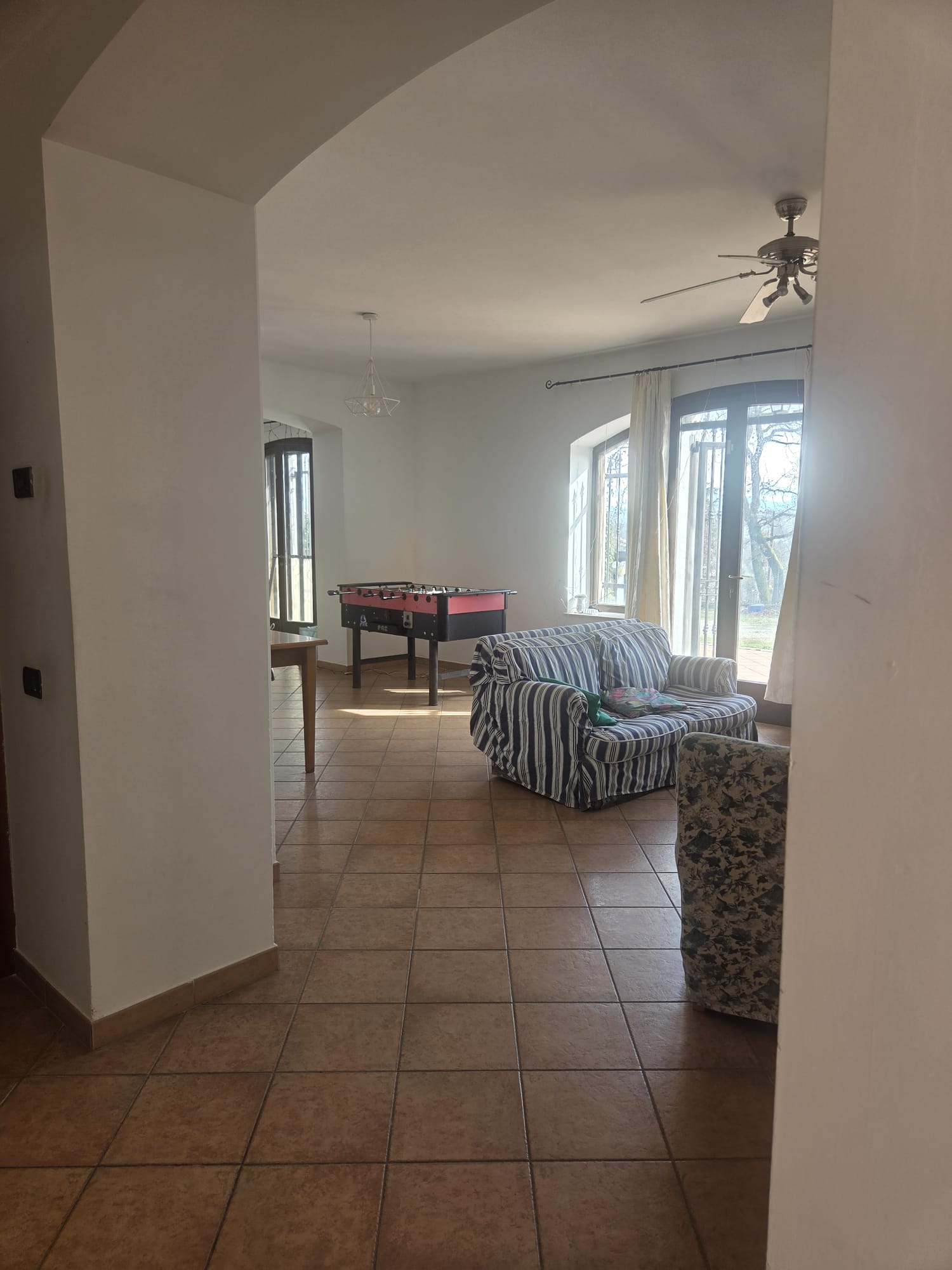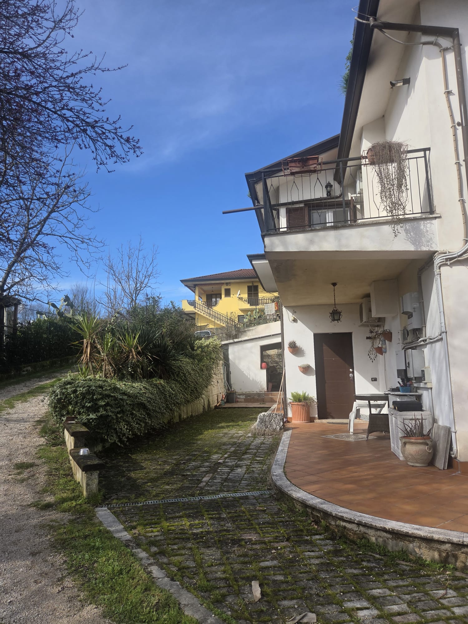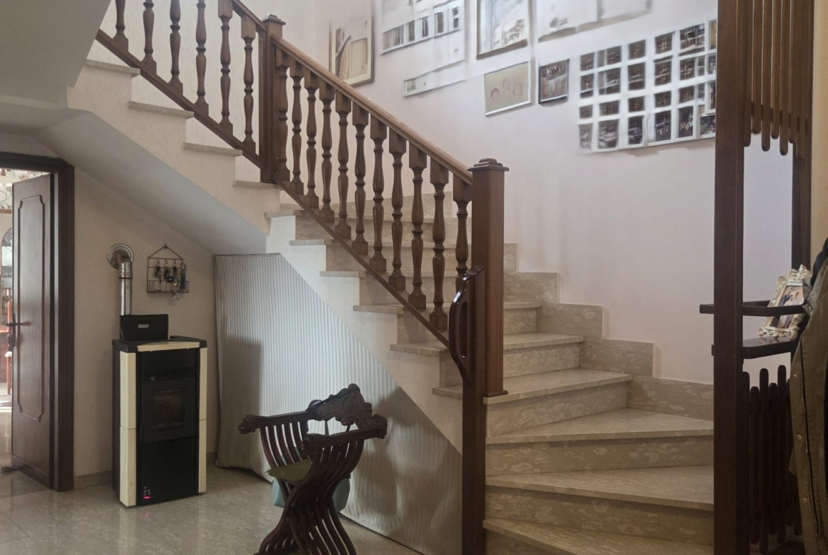 -PIANO PRIMO di circa 153MQ, con entrata dalla scala esterna in muratura che culmina con un PORTICO di circa 42 MQ, composto da grande disimpegno con sottoscala, 1 camera/studio, 2 camere da letto, 1 WC con doccia, 1 ripostiglio, 1 camera da pranzo con balcone di circa 10 MQ, 1 cucina, 1 WC con doccia; anche in questa zona troviamo radiatori in ghisa, stufa a pellet e split e le finestre sono tutte in doppio vetro e pvc. Dalla cucina possiamo accedere tramite una porta blindata ad un comodo GARAGE/LOCALE TECNICO, accessibile anche dall’esterno, in cui trovano posto la pompa di calore, boiler e impiantistica varia.