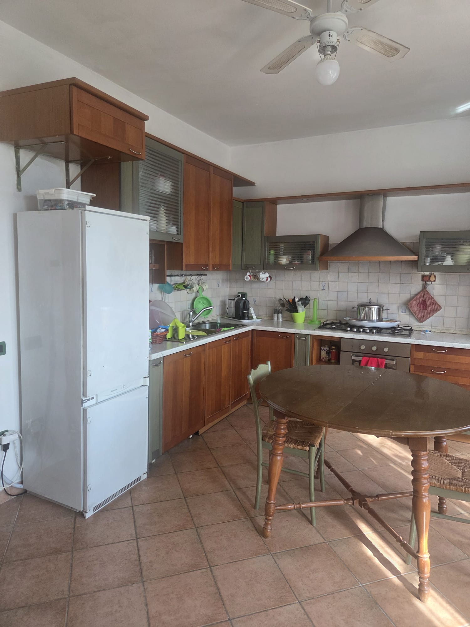 -PIANO TERRA di circa 185 MQ, ristrutturato, indipendente rispetto agli altri 2 piani, con comodo ingresso/disimpegno, 1 sala, 1 grande e luminosissimo open-space con camino elettrico a pellet, split, termoconvettori e radiatori, angolo cottura da cui si accede direttamente all’esterno tramite delle grandi vetrate, 1 ripostiglio/lavanderia, 1 WC con doccia, 1 WC con vasca, 3 camere da letto di cui una con cabina armadio; in questa zona i pavimenti sono in cotto, le finestre hanno doppio vetro con legno e zanzariere.