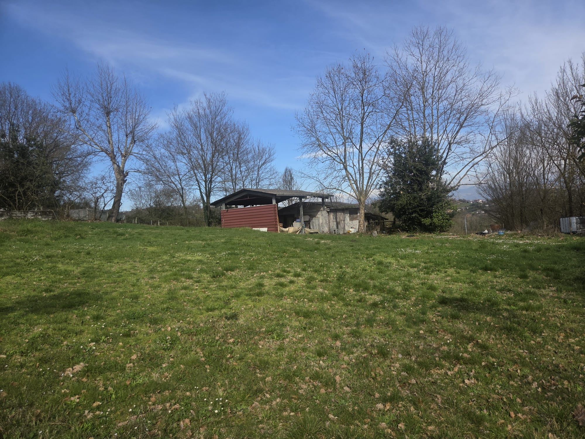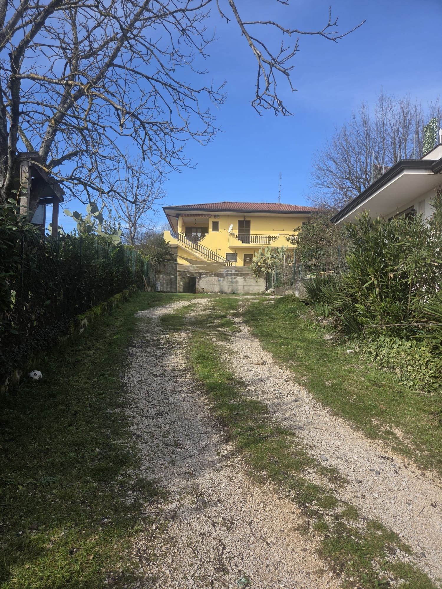 La grande corte esclusiva che circonda la villa presenta aree con giardino, zone adibite a piazzale, ricoveri per autoclave, cantine ed un portico utilizzabile anche per riporre attrezzature o moto e biciclette.