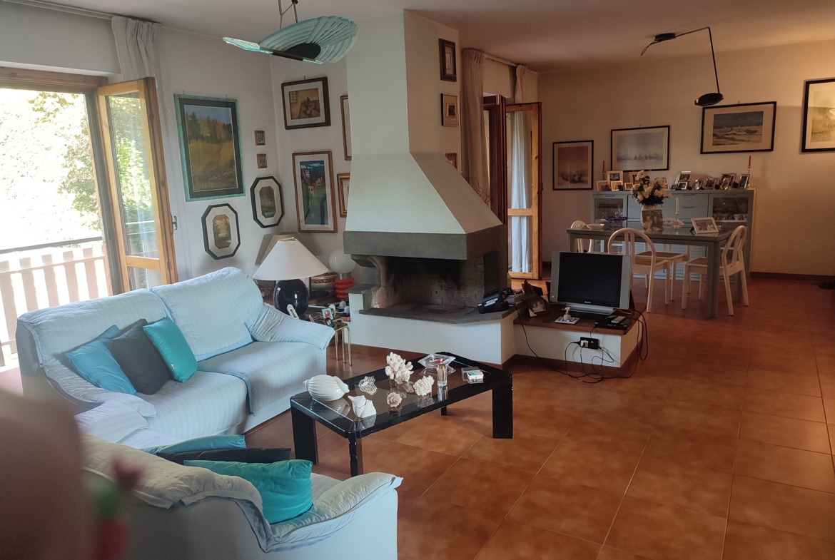 -PT : disimpegno, ampio salone doppio con camino, cucina abitabile, grande studio, per un totale di 75MQ, oltre a 19MQ di balcone dal quale si accede al giardino privato di 162MQ;