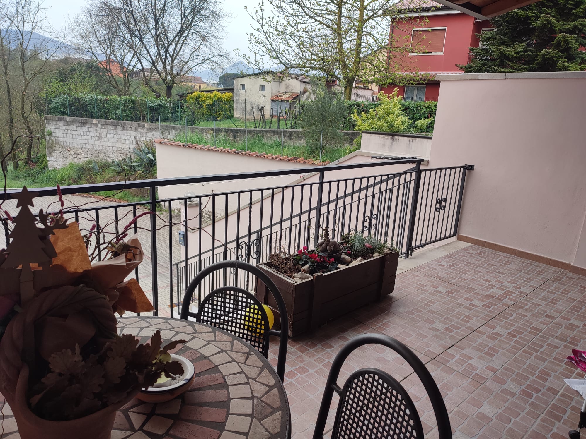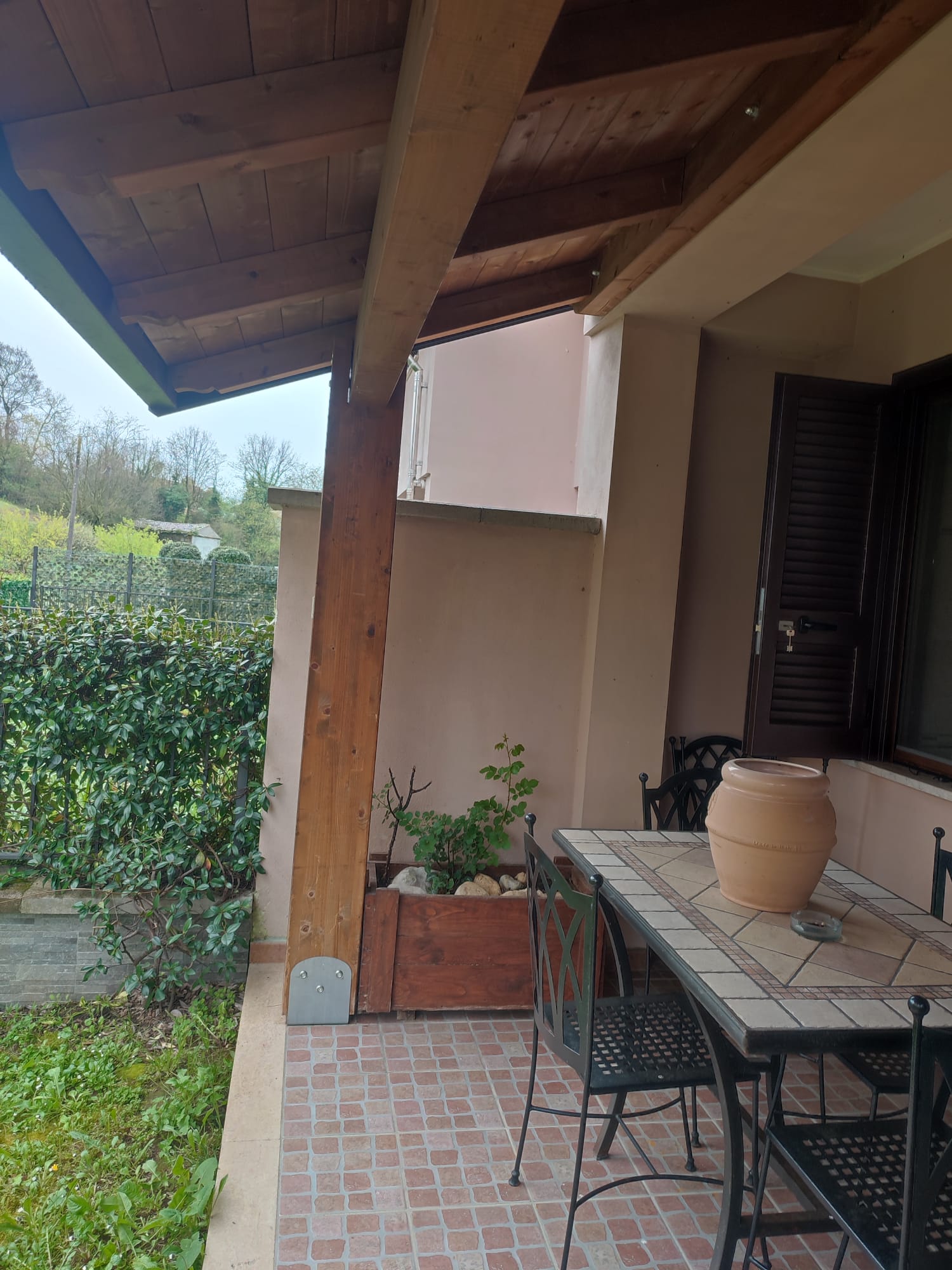 -P1 di circa 48 MQ raggiungibile tramite una scala esterna in muratura dove troviamo uno spazio esterno tra portico e balcone di circa 14 MQ e che introduce alla zona giorno dove troviamo un ampio living, una cucina abitabile dalla quale si accede ad un portico di circa 6 MQ con un piccolo giardinetto ed 1 WC di servizio;