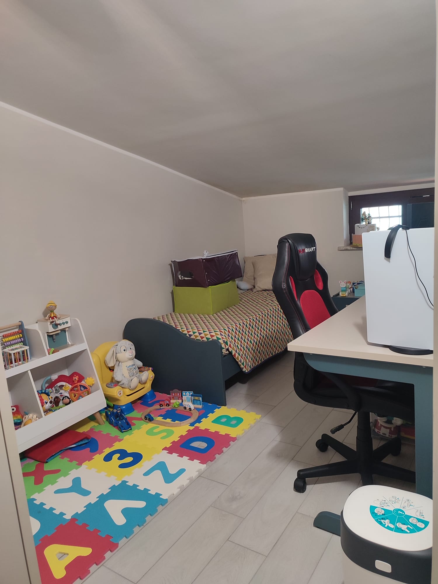 -P2 di circa 50 MQ raggiungibile tramite una moderna scala in ferro e legno, dove troviamo un ampio disimpegno, 2 camere da letto, 1 studio ed 1 comodissimo WC con vasca e doccia.